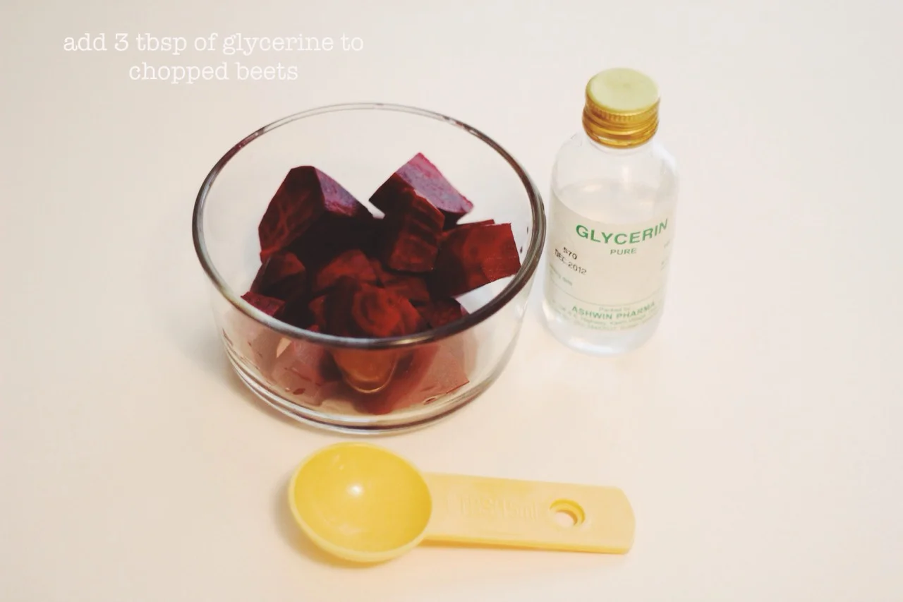 One product I love to use is lip stain and the recipe to make it at home is super simple. All one needs is beets and glyercine (a substitute can be almond oil) along with a way to steam the beets and strain them. A container for the complete lip stain can relatively be anything. I used an empty and cleaned bottle that once stored liquid milk thistle. Highly recommend refrigerating if wanting it to last up to 3 weeks. However, do make a new batch if it no longer smells fresh.
