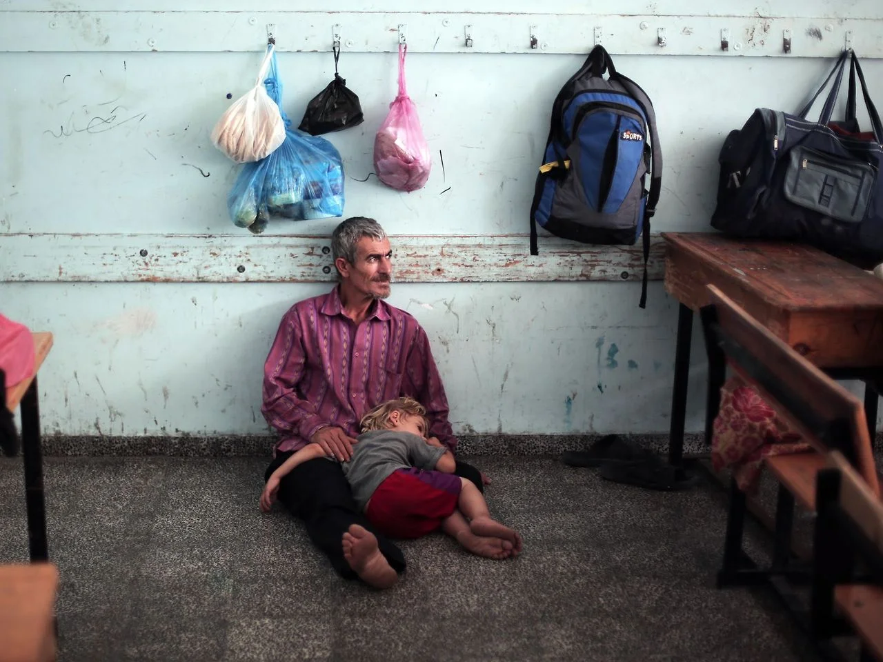 The families sought shelter in the same U.N. school where they stayed during the previous two rounds of fighting. In all, 20 U.N. schools took in more than 17,000 displaced Gazans, many of them children, after Saturday’s warnings by Israel that civilians must clear out of northern Gaza.